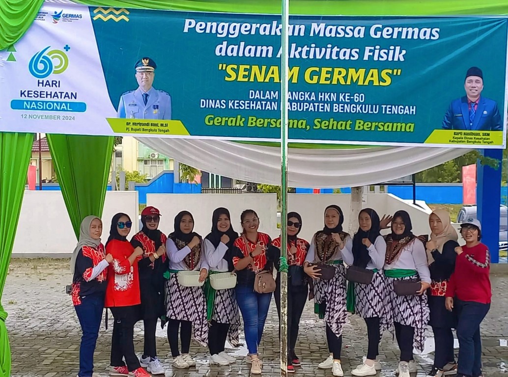 LOMBA SENAM GERMAS yang di laksanakan Hari Kamis, 07 November 2024 dimana Kegiatan ini di buka langsung oleh Kepala Dinas Kesehatan Kabupaten Bengkulu Tengah dengan tema GERAK BERSAMA, SEHAT SEMUA....