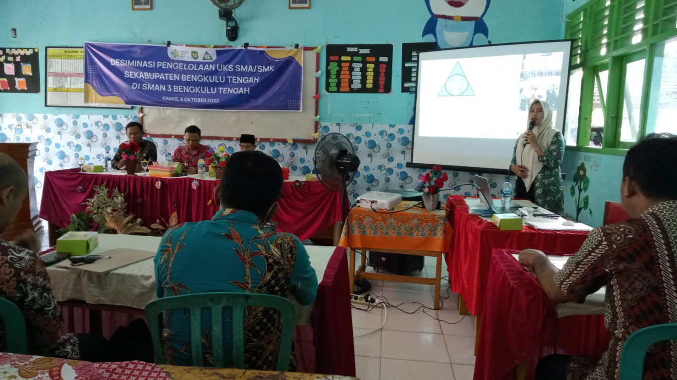 Materi dalam kegiatan ini di sampaikan oleh ibu Ida Riyani selaku kasi Promosi Kesehatan dan Pemberdayaan Masyarakat Dinkes Bengkulu Tengah yang mengusung materi tentang MANAJEMEN UKS/M dan materi selanjutnya IMPLEMENTASI UKS/M di SMA 3 yang di sampaikan oleh Bapak Teguh, selaku guru UKS di SMA 3 Bengkulu Tengah.