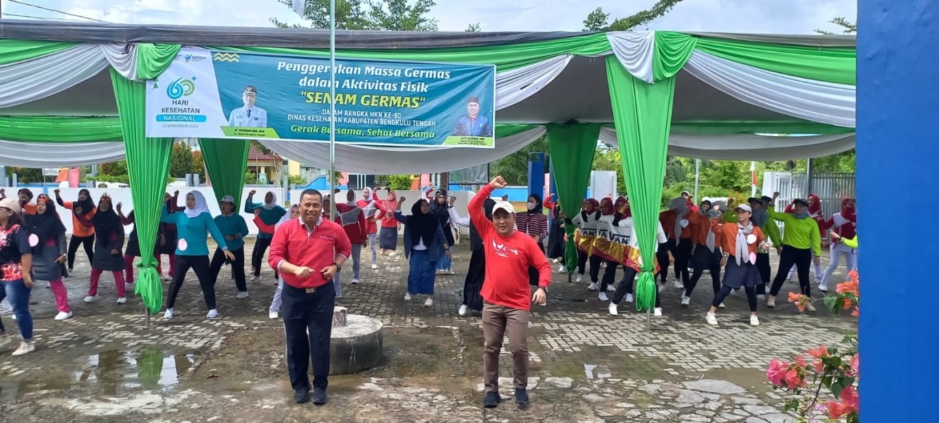 Acara dimulai hari ini dengan LOMBA SENAM GERMAS yang dilaksanakan di Halaman Kantor Dinas Kesehatan Kab Bengkulu Tengah dan dibuka Langsung Oleh Kepala Dinas Kesehatan Barti Hasibuan, SKM