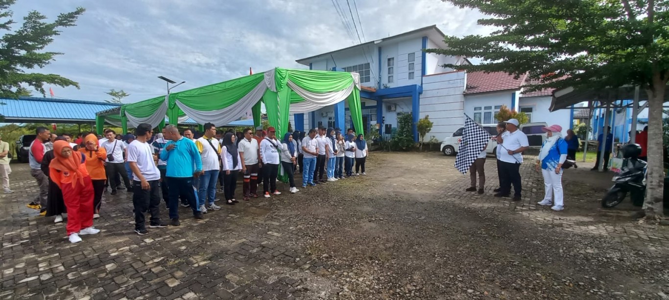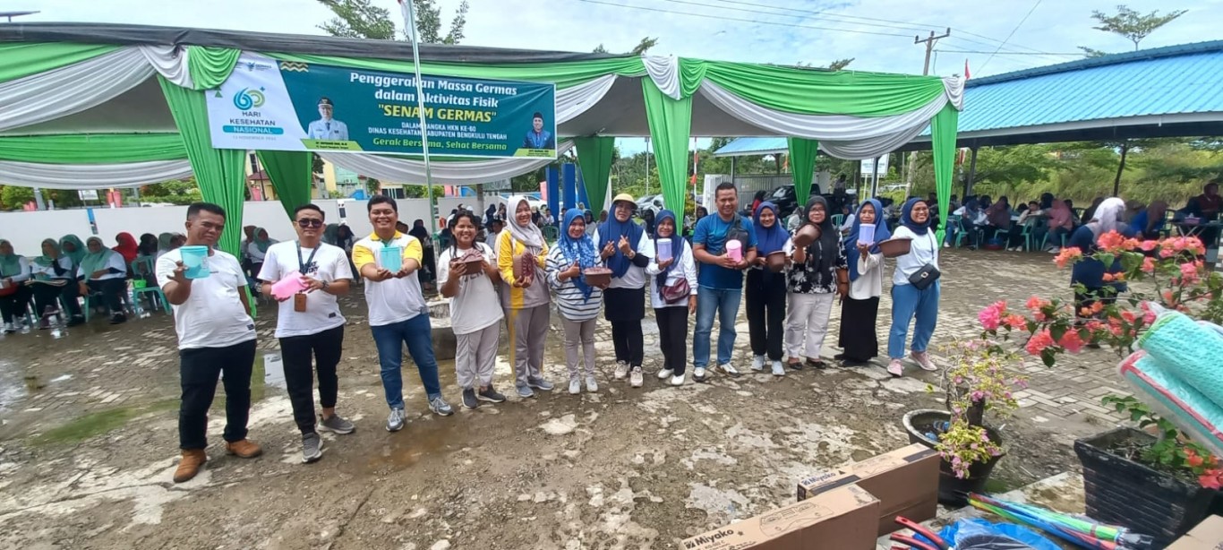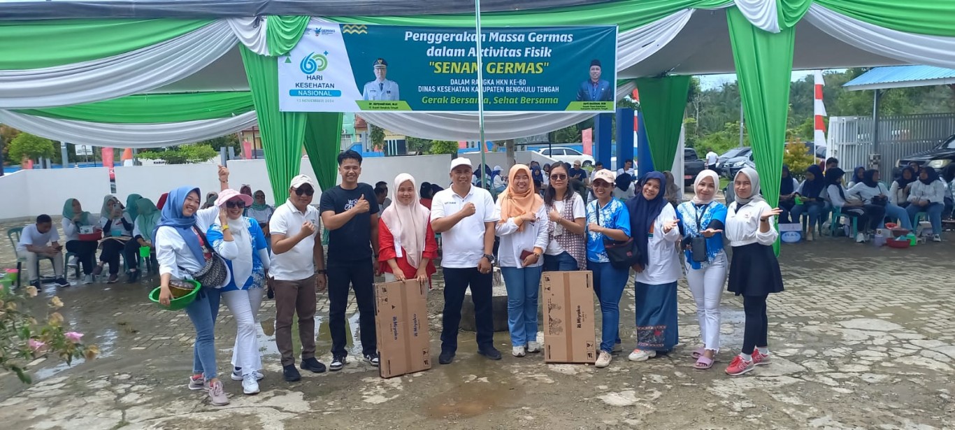 Hari ke dua , Rangkaian Acara Hari Kesehata Nasional (HKN) Ke 60 di kabupaten Bengkulu Tengah dilanjutkan dengan kegiatan jalan santai bertabur hadiah yang di buka kick off oleh Kepala Dinas Kesehatan bapak Barti Hasibuan, SKM