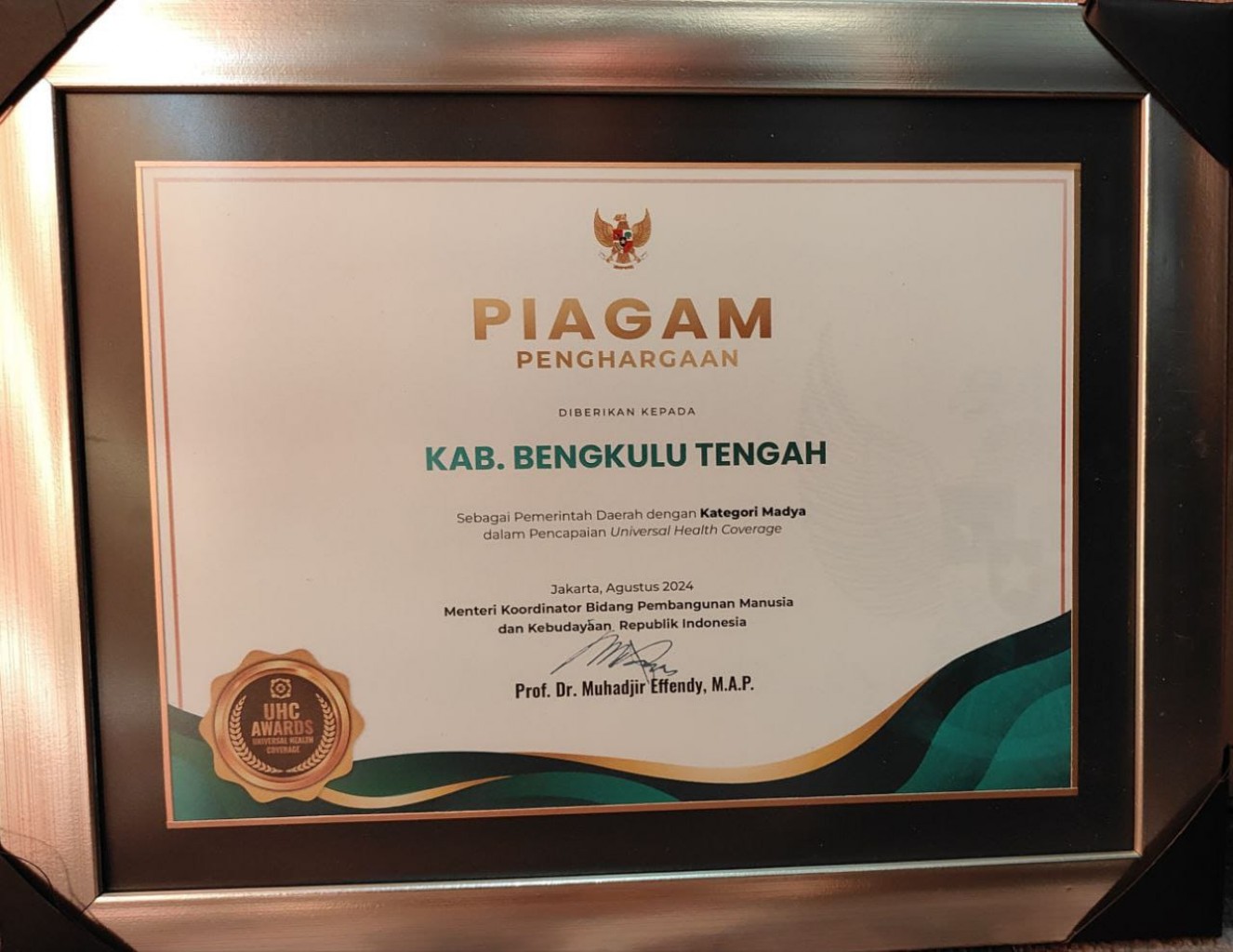 Pemerintah Kabupaten Bengkulu Tengah Kembali meraih penghargaan Universal Health Coverage (UHC) Tahun 2024